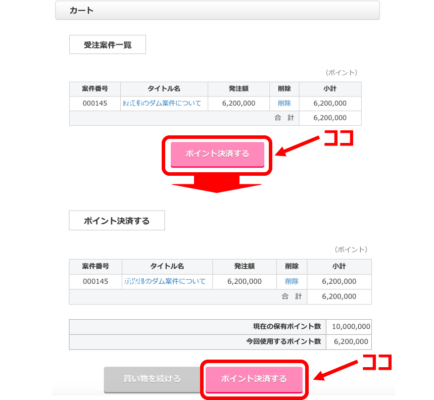 手持ちのポイントを使用して案件のポイント決済を行います。 「ポイント決済する」をクリックしてポイント決済ページへ進んで下さい。